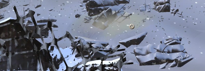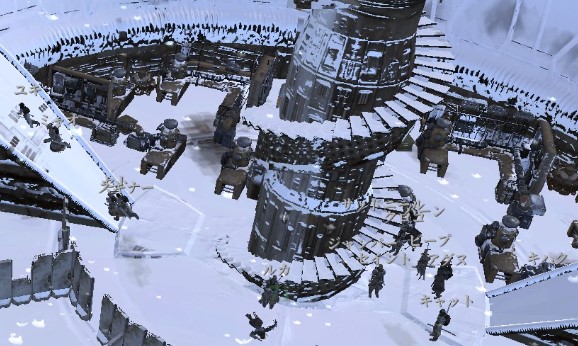 城(仮)の東側に回り込むと、吹雪が晴れ、全景を一望出来るようになる。