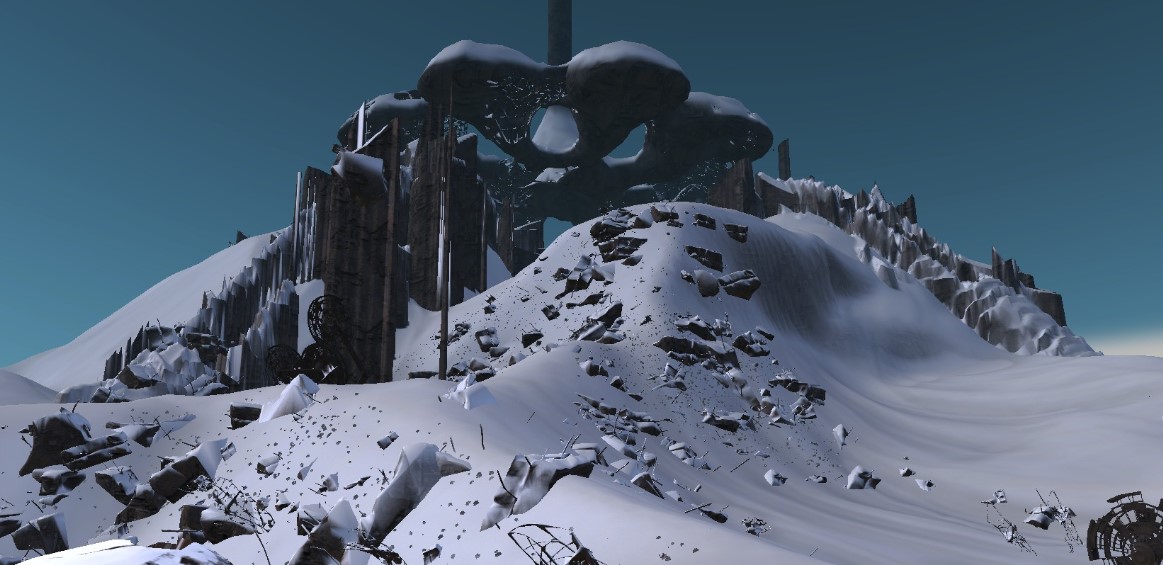 巨大構造物の残骸が林立する物悲しい、生命の気配の無い廃墟の世界……