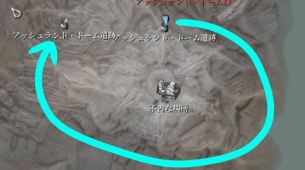 経路を確認すると、奥の建物「玉座」には、手前の「アッシュドーム」を通過しなければ辿り着けないらしい。