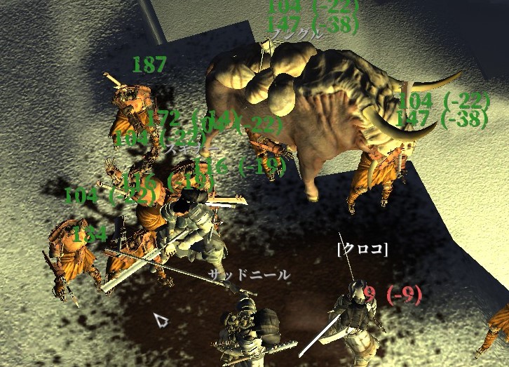 画像手前の黒いゴマみたいなのがプレイヤー一行。