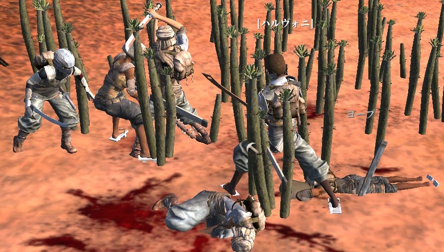 質の悪い剥ぎ取り装備ばかりの隊員達だが、それでも一人、また一人と奴隷商人を倒していく。