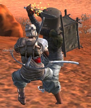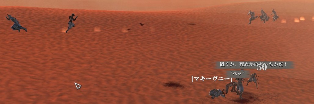 なんと!? 砂漠を走り回る解放奴隷のうち一人が、素手で足止めをしてくれている!