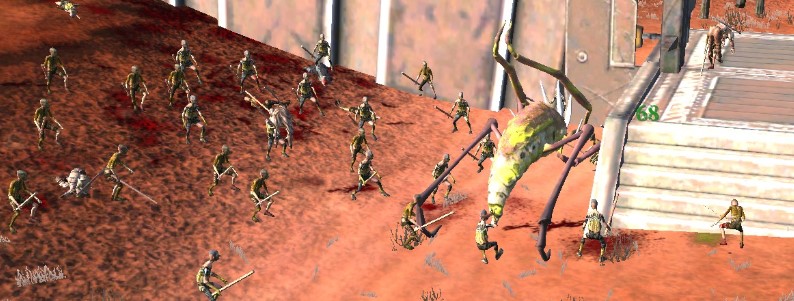 拠点正門前では、ハイブと協力して反乱農民の駆除を続ける。
