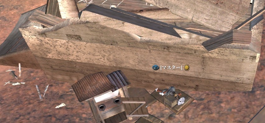 入り口脇の地面に、しっかり砲台から矢が飛んできていた痕跡が。