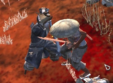 地形に引っ掛かって拠点内に留まっていた者達の乱戦が始まる中、浮浪忍者達も到着。