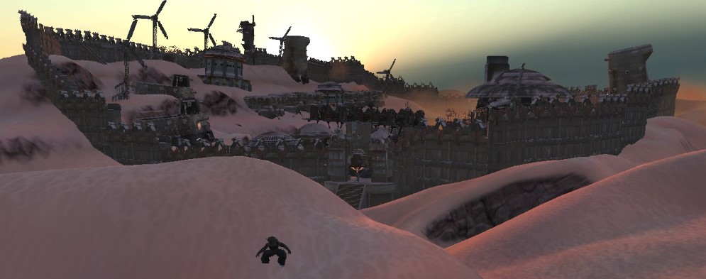 砂塵に霞む我が町へ、皇帝テングを連れて戻ってくる事に成功。
