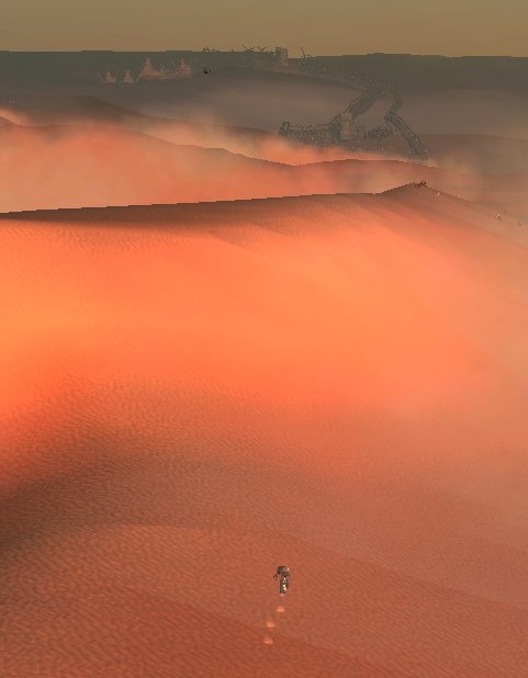 帰宅途中、砂漠を歩くKenshiの一団に護衛を頼み……