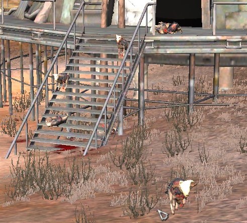 反乱農民のボーンドッグが死んだ飼い主を食べているという地獄絵図が出迎えてくれた。