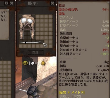 潜入成功し、無事奪われたメイトウ脇差を奪還。