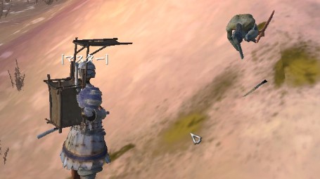 斜路を経由し、壁の上に登り、そこから塔に登り、画像の位置が最高高度となる。