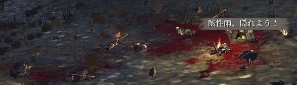 無限湧き?の敵兵を蹴散らしつつ、マスターは休憩小屋から布地を持参し、酸性雨対策として寝袋に屋根を付ける。