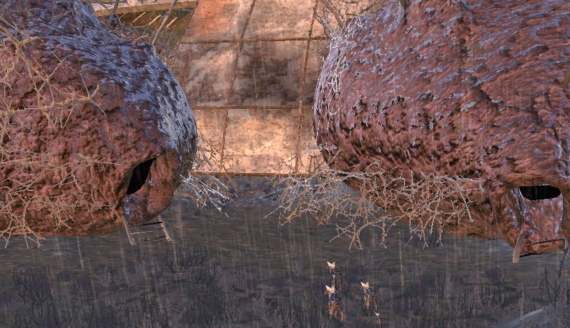 サザンハイブは、倒した敵をポールにくくりつけ、キングに食わせると言う恐ろしい習性を持つ。