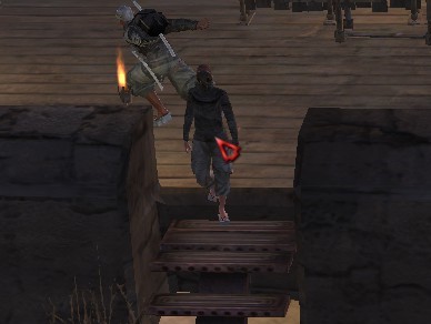 追ってくる敵は階下で斬り倒す。
