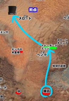 旧本拠点で食料を補充した後、自作の中継地点を経由して砂漠を南下。