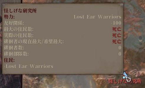 リアクティブワールドMOD下では、この地は「Lost Ear Warriors」……「耳無し士族」の領地となっている。