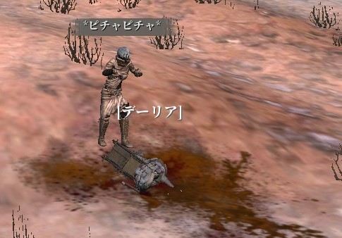 大荷物を担いで回避運動が鈍っているデーリアが倒れる。