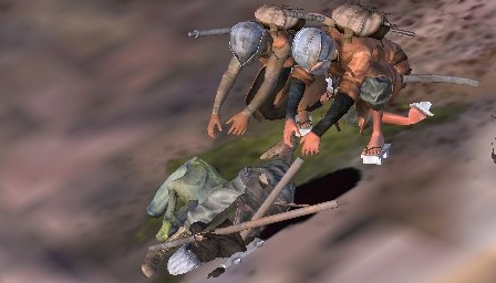 彼らは得意とする単純作業を荒野で続け、鉱石を売って旅費に充てていた。