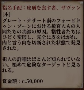 クロト同様、謝礼を渡して食料を買い足すと、手配書を確認するシルバーシェイド。