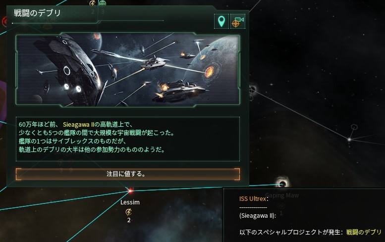 艦隊戦跡の残骸から、60万年前、サイブレックスと戦っていた何らかの勢力が存在していた事が判明。