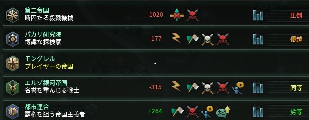 戦力比で見ても、都市連合とパカリは「劣等」。パカリが「同等」。