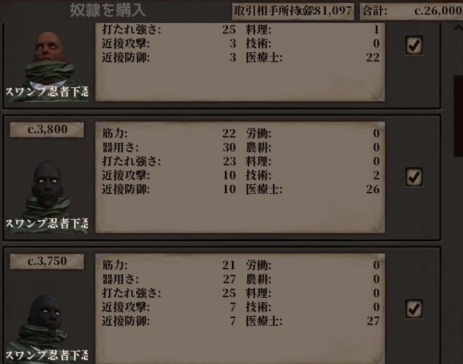 返り討ちにした襲撃者、ステ30以下のスワンプ忍者達を仲間入りさせられないかとチャレンジ。