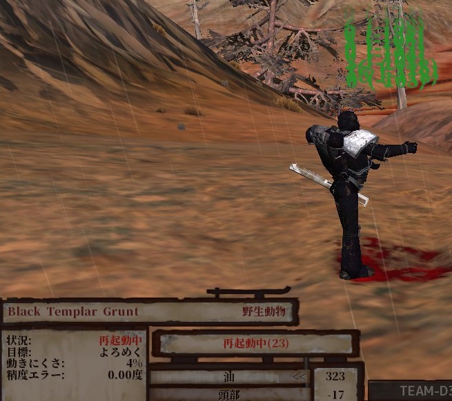 シーズン4・三期の初期にブラックテンプラーと遭遇した、フラッドランド南東へ。