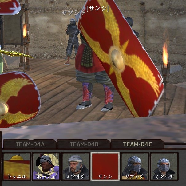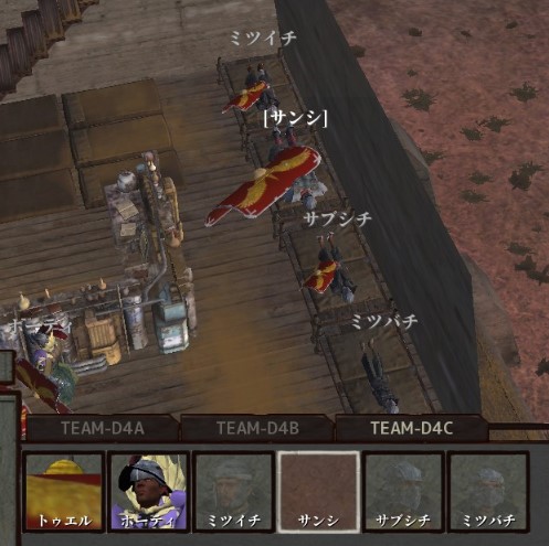 ペナルティ装備を無視してサンシがつまようじを撃ち、刀装備のミツイチが斬りかかる。