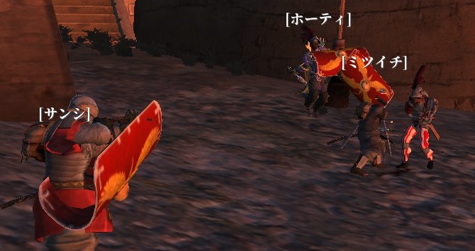 チームからタゲが外れ、追手は飢え盗との戦闘を開始。