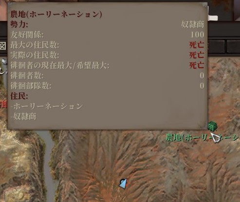 と、今度は農地の所属がホーリーネーションから奴隷商になっているのを発見。