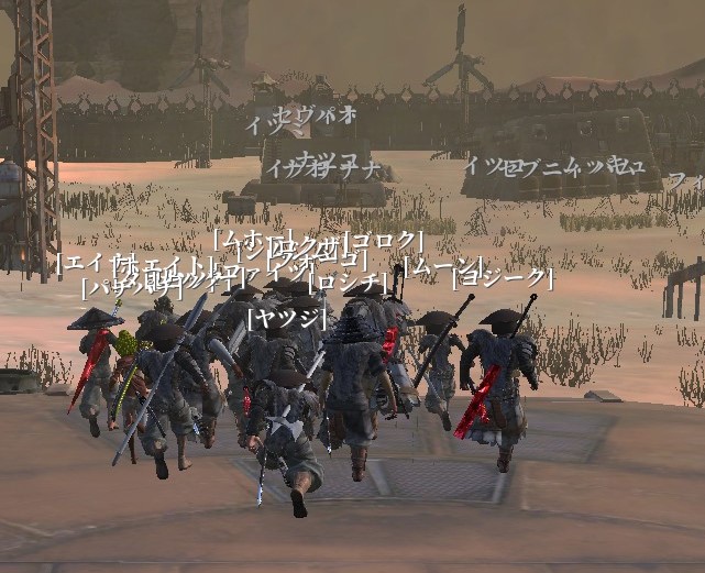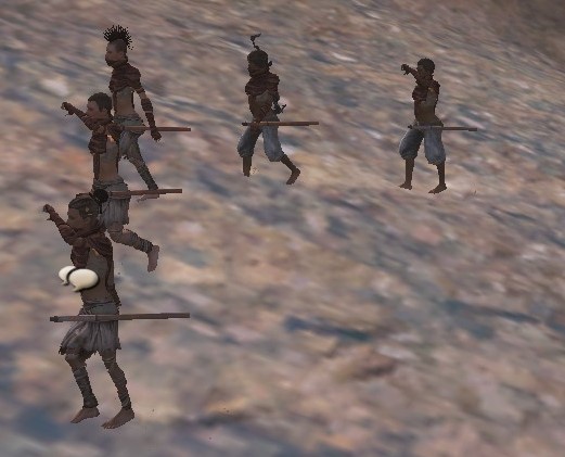 ウェイステに向かう途中、読み込み範囲外で静止状態になっていた傭兵2チームと出会う。