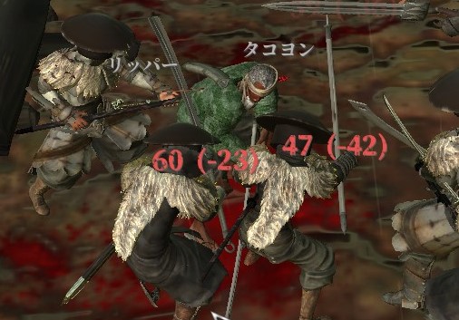 戦闘の気配を察して、槍使いの「セイシロウ」が参戦して来るので、ゴロクらに任せ、同時に戦って行く。