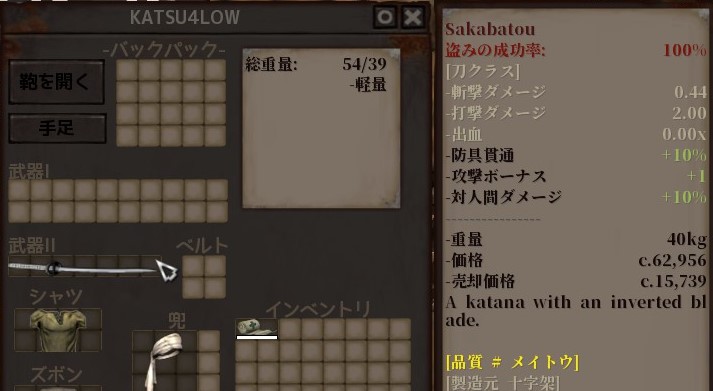 斬0.44 打2.00 出血0.00x 貫通10% 攻+1 対人10% 40kg 62956c 1*7
