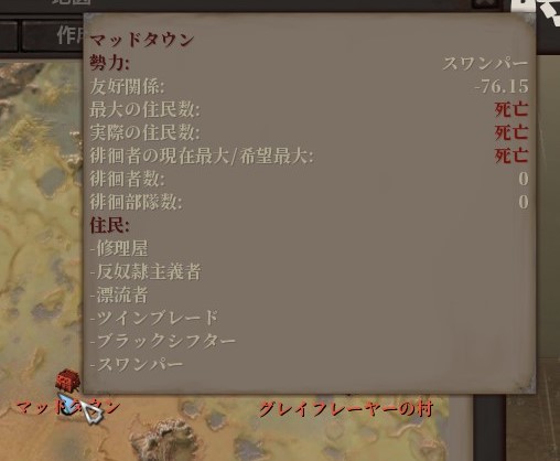 密造酒場やマッドタウンなんかはそれであっさり死亡判定になったものの、なぜかロットやグレフレ村はうまく行かないんだよなぁ……