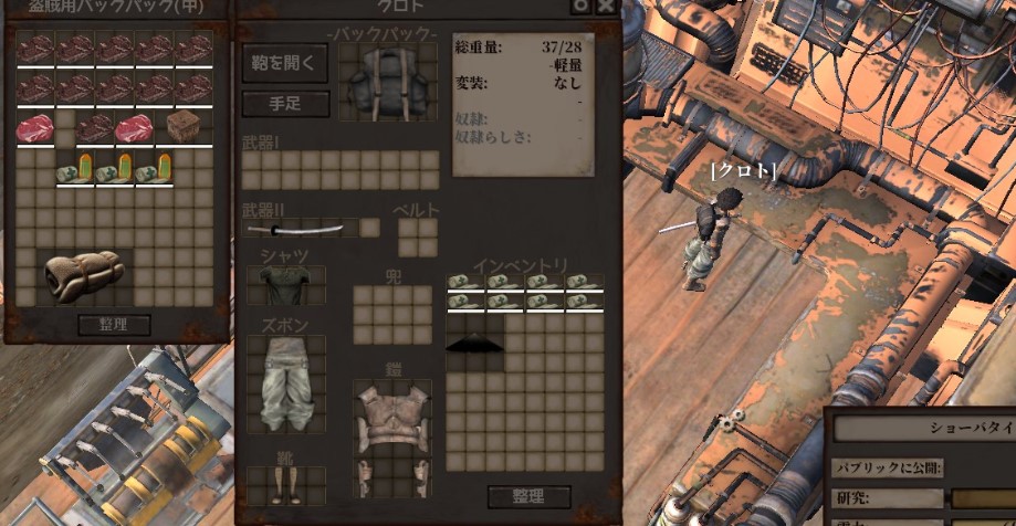 武器は検証回でテングから奪ったメイトウ「刀」。開始状態としては強すぎるくらいだ。