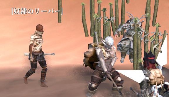 記憶の飛んでしまったブラッドレイダー役のカン、ラワン、カッシュ、カッシュの仲間2名。