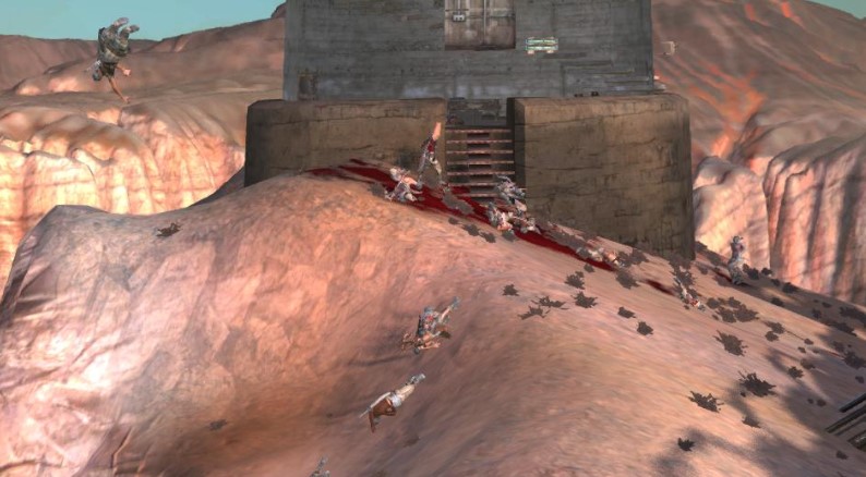 また、デッドランドに向かってトレーダーズギルドのキャラバンが突き進んでいくのを発見しつつ、酸性雨エリア横断。