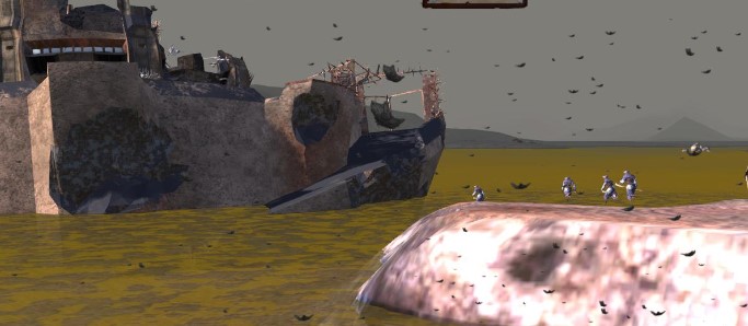 丁度いい具合にカメラを引く時にNPCのセリフが出てくれたので、「突然の混乱」感を演出出来たかも。